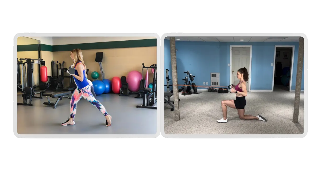 The secret sauce of Gym Genius is it's versatility, No matter where you're training (home or gym), you can follow the same plan! We give you options for the same exercises using different equipment, so whether you're at home using bands and a chair, or at the gym using fancy gym equipment, you don't have to change your workout! This means that your plan won't get derailed so you know you'll stay on track. Same workout, different modality options, better results.